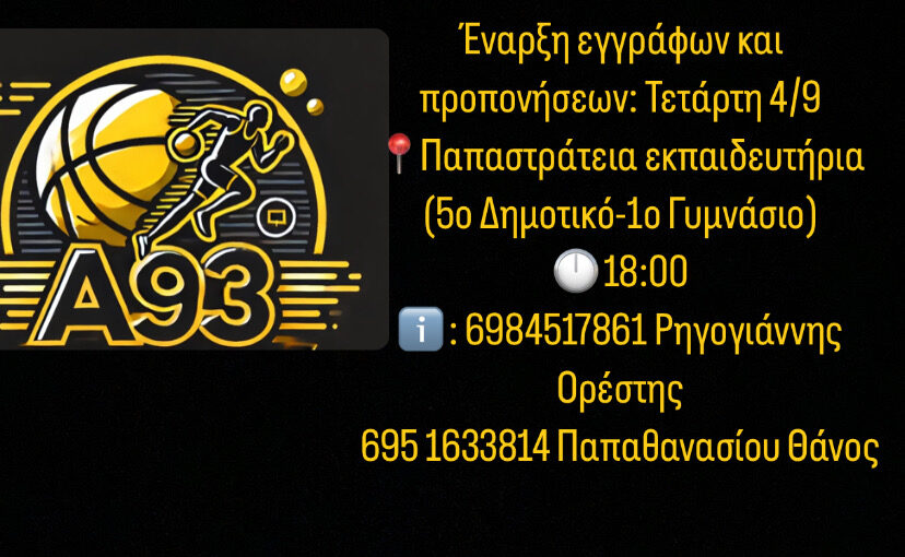 Έναρξη εγγραφών και προπονήσεων: Τετάρτη 4/9 Ώρα : 18:00