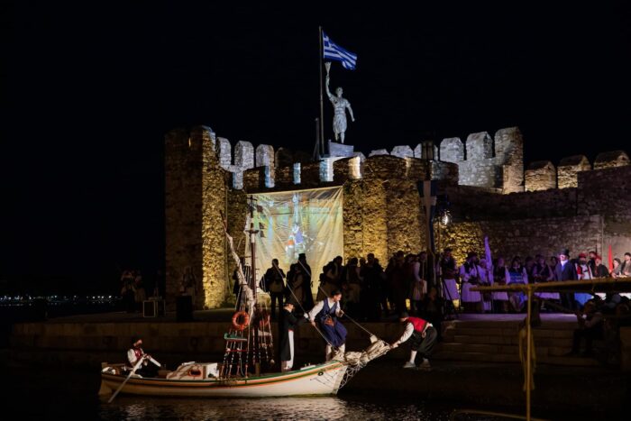 Το βράδυ του Σαββάτου, 13 Μαΐου, υπό τους ήχους της Παπαχαραλαμπείου Δημοτικής Φιλαρμονικής Ναυπάκτου και της Φιλαρμονικής Ιεράς Πόλεως Μεσολογγίου «Χρήστος Καψάλης», η εντυπωσιακή πομπή με τους 300 και πλέον συμμετέχοντες κατέληξε στο Ενετικό Λιμάνι όπου έλαβε χώρα η Αναπαράσταση της άφιξης του Ιωάννη Καποδίστρια στην πόλη της Ναυπάκτου, σε σκηνοθεσία του Ιωάννη Ζαραφωνίτη και του Συλλόγου Αναβίωσης Απογόνων Σουλιωτών Ναυπακτίας «ΕΠΑΧΤΟΣ», σε κείμενα του Διευθυντή της Παπαχαραλαμπείου Βιβλιοθήκης Ναυπάκτου κ.Γιάννη Χαλάτση, με αφηγητή τον Διευθυντή του 2ου Λυκείου Ναυπάκτου κ.Πέτρο Πιτσιάκκα και ερμηνευτές τους Ηρακλή Μπεζαΐτη, Νικόλα Νούλα, Χρήστο Λαγιόπουλο, Θανάση Κρίτσα και Γιάννη Αδρασκέλα. Χαιρετισμούς απηύθυναν ο Μητροπολίτης Ναυπάκτου και Αγίου Βλασίου κ.κ.Ιερόθεος, ο Αντιδήμαρχος Πολιτισμού κ.Ντίνος Τσουκαλάς, η Πρόεδρος του Συλλόγου Αναβίωσης Απογόνων Σουλιωτών Ναυπακτίας «ΕΠΑΧΤΟΣ» κ.Μαρία Σαγώνα. Η Προϊσταμένη της Εφορείας Αρχαιοτήτων Αιτωλοακαρνανίας και Λευκάδος κ.Ολυμπία Βικάτου στον πανηγυρικό της Ημέρας αναφέρθηκε στα ιστορικά γεγονότα της Απελευθέρωσης της Ναυπάκτου.