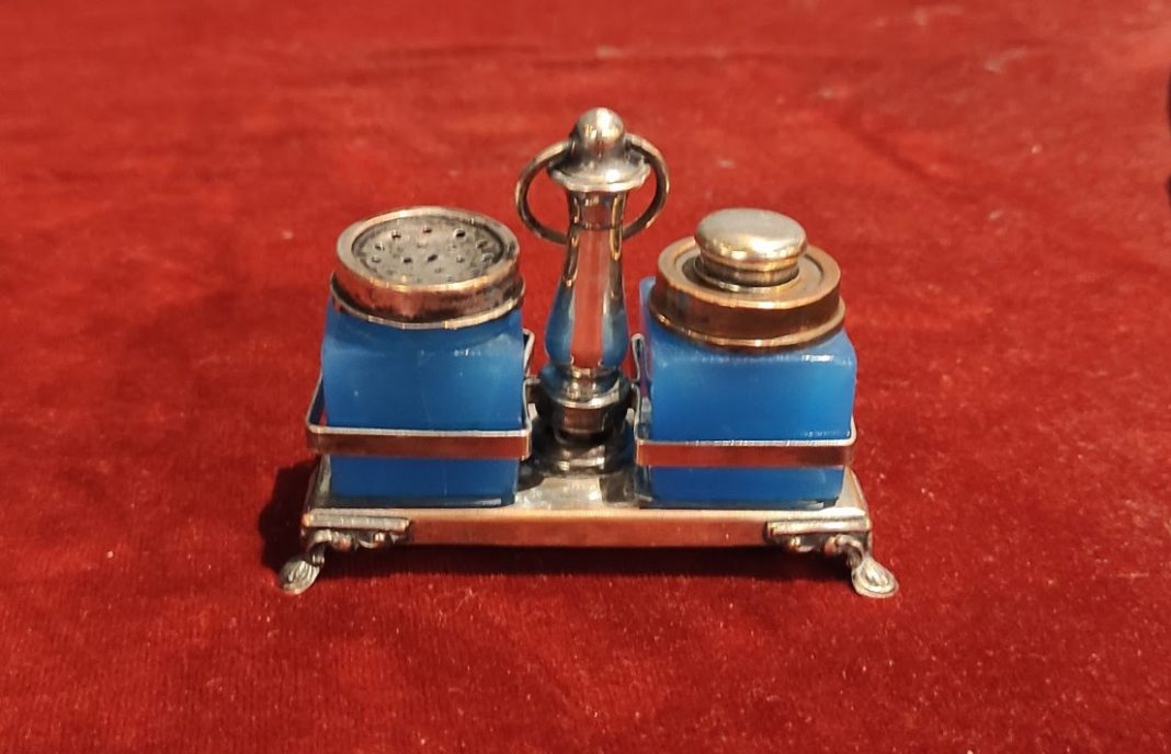 (Aλατιέρα του τέλους του 19ου αιώνα από ασήμι και μπλε βενετσιάνικη οπαλίνα)