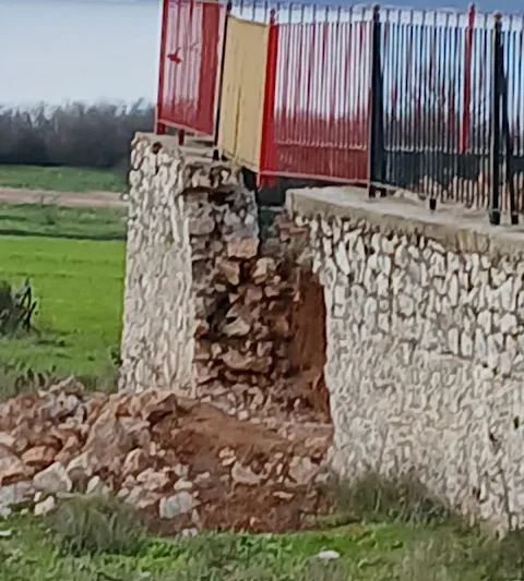Έναν αύλειο χώρο σχολείου με μισογκρεμισμένο το μαντρότοιχο , με σωρούς από πέτρες που ενέχουν σοβαρούς κινδύνους για τραυματισμούς των μικρών μαθητών που θα παίξουν εκεί