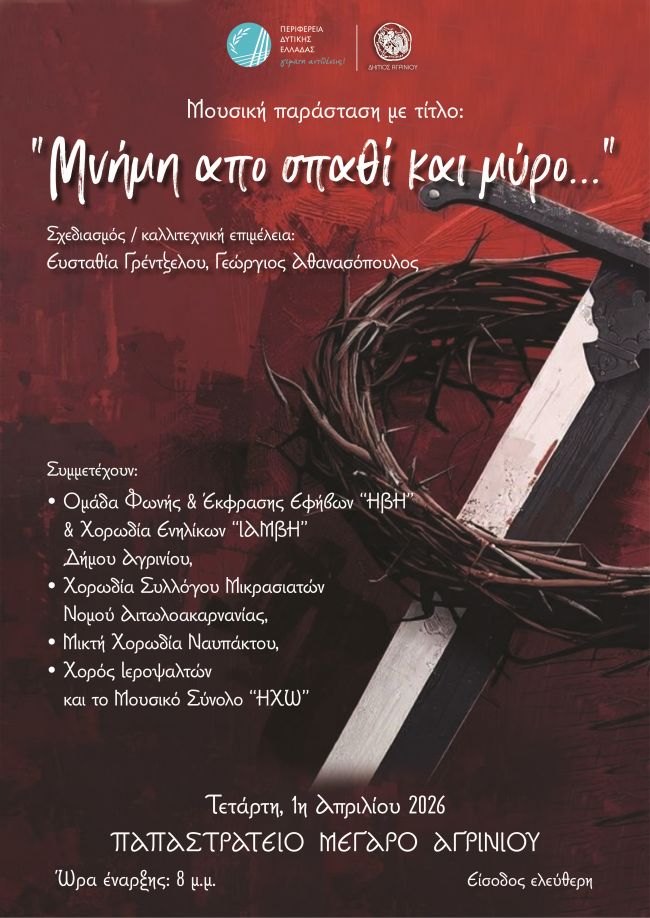 Μέσα από τον δραματοποιημένο λόγο, το βυζαντινό μέλος και το χορωδιακό τραγούδι οι δύο πόλεις – του Αγρινίου και της Ναυπάκτου – συνεργούν σε μια παράσταση – ύμνο προς τη θυσία του Εξοδίτη για την Ελευθερία και του Ιησού Χριστού για την Ανθρωπότητα…