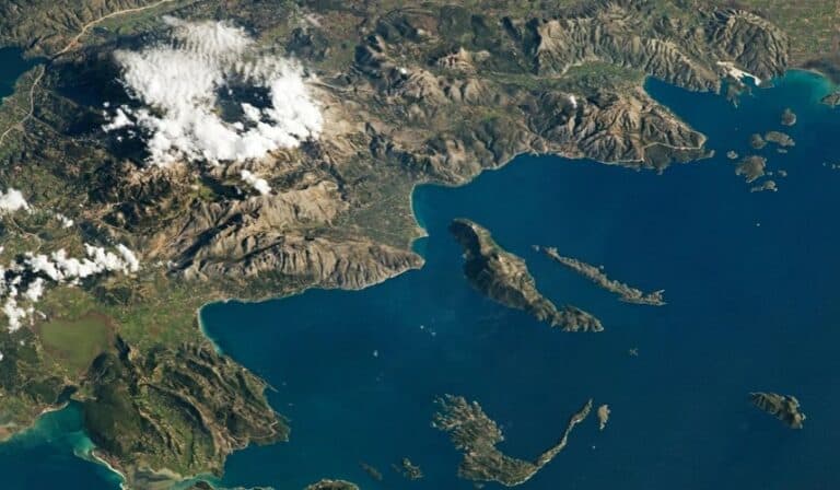 Εντυπωσιάζει η διαστημική φωτογραφία ενός μέρους της ακτογραμμής της Δυτικής Ελλάδας και ορισμένων νησιών του Ιονίου, που έδωσε στη δημοσιότητα η Αμερικανική Διαστημική Υπηρεσία (NASA).