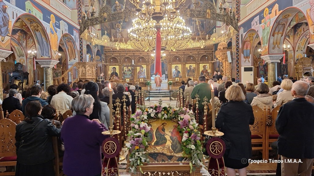 Της πανηγυρικής Αρχιερατικής Θείας Λειτουργίας, που τελέσθηκε το πρωί της Παρασκευής 10ης Μαΐου 2024, προεξήρχε ο Σεβασμιώτατος Μητροπολίτης Αιτωλίας και Ακαρνανίας κ. Δαμασκηνός.