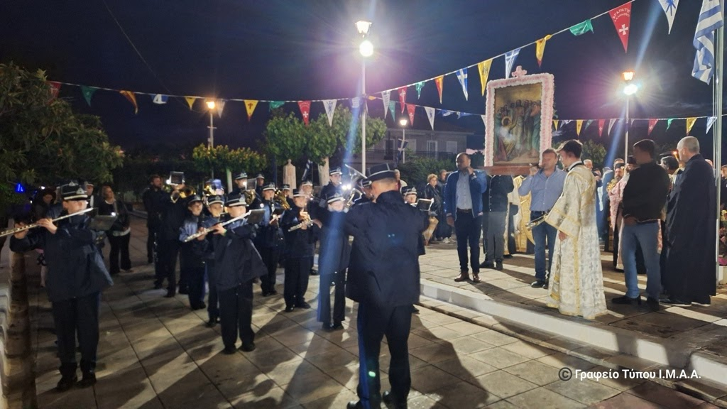 Στο τέλος του Εσπερινού πραγματοποιήθηκε η λιτάνευση της Ιεράς Εικόνος του Αγίου στους δρόμους του χωριού, υπό τους ήχους της Φιλαρμονικής του Δήμου Μεσολογγίου. Συμμετείχαν ο Δήμαρχος Ιεράς Πόλεως Μεσολογγίου κ. Σπύρος Διαμαντόπουλος, Αντιδήμαρχοι, Δημοτικοί Σύμβουλοι, εκπρόσωποι των τοπικών αρχών και πλήθος πιστών.