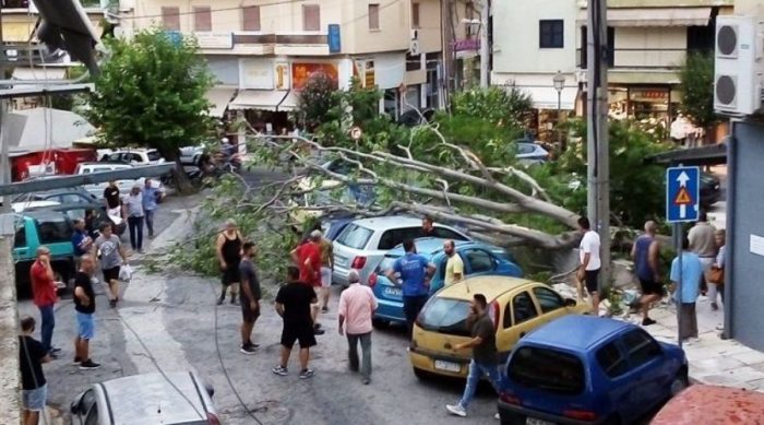 Δέντρο που ξεριζώθηκε λόγω των ισχυρών ανέμων, που έπνεαν το πρωί καταπλάκωσε σταθμευμένα αυτοκίνητα, στην πόλη της Κέρκυρας, προκαλώντας υλικές ζημιές, ενώ χρειάστηκε η επέμβαση της πυροσβεστικής υπηρεσίας για να τα απεγκλωβίσει.