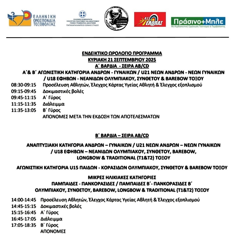 1️⃣ Έναρξη Α’ μέρους Αγώνων Κυριακή 21.09.25  στις 09:45 με απονομές στις 14:00