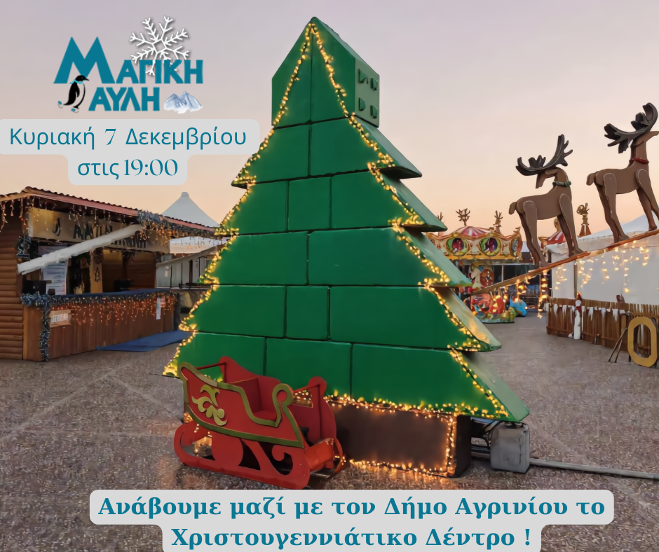 Η «Μαγική Αυλή» συμμετέχει φέτος στη μεγάλη χριστουγεννιάτικη γιορτή του Δήμου Αγρινίου για το άναμμα του Χριστουγεννιάτικου Δέντρου, την Κυριακή 7 Δεκεμβρίου, στις 19:00, στην κεντρική πλατεία Αγρινίου, και προσκαλεί όλους τους μικρούς και μεγάλους φίλους της να ζήσουν μια βραδιά γεμάτη φως, μουσική και… παραμύθια!