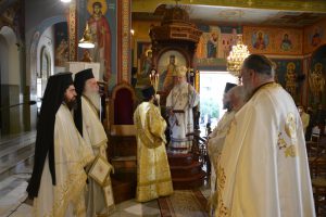 Το πρωί της Κυριακής τελέσθηκαν η ακολουθία του Όρθρου και η αρχιερατική Θεία Λειτουργία, προεξάρχοντος του οικείου Ιεράρχου Σεβασμ. Μητροπολίτου κ. Κοσμά.