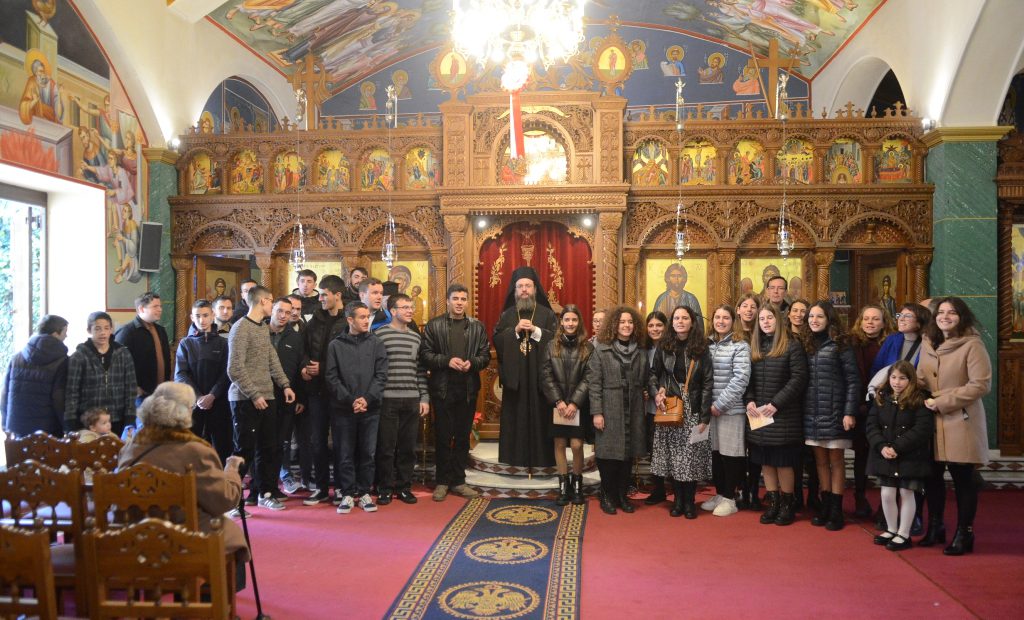 Στη συνέχεια ο Σεβασμιώτατος άκουσε τα κάλαντα από τα αγόρια και τα κορίτσια των κατηχητικών της Χ.Ε.Α.