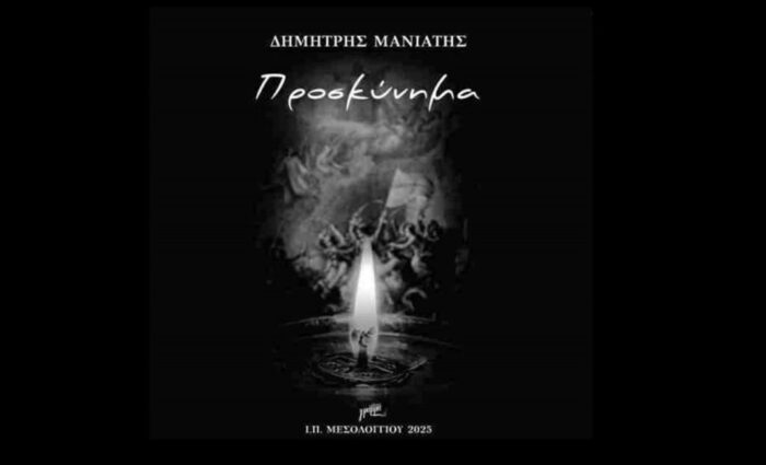 Η ποιητική συλλογή «Προσκύνημα» του συγγραφέα Δημήτρη Μανιάτη, αφιερωμένη στα 200 χρόνια από την Έξοδο του Μεσολογγίου, παρουσιάζεται στο Αγρίνιο, στο πλαίσιο των επετειακών εκδηλώσεων για τη μεγάλη αυτή ιστορική στιγμή του Ελληνισμού, το Σάββατο 28 Μαρτίου 2026, στις 19:00 στην αίθουσα του Δημοτικού Συμβουλίου, Κτίριο τράπεζας της Ελλάδος.