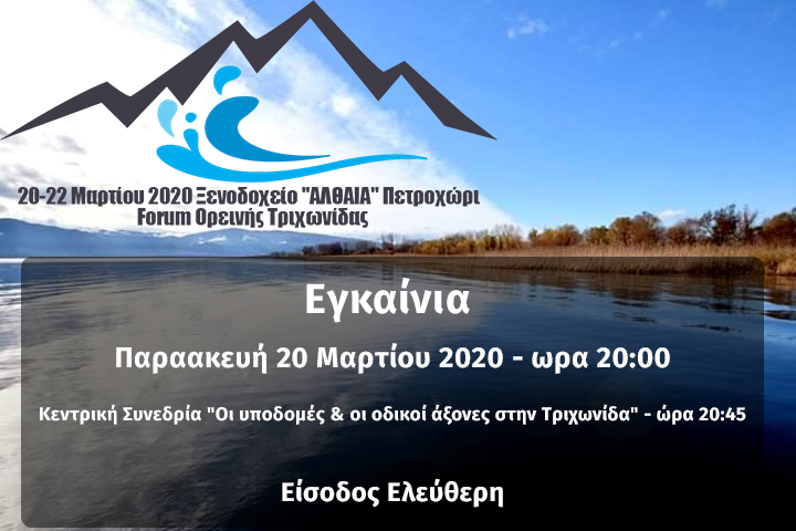 Το Forum Ορεινής Τριχωνίδας είναι πια γεγονός και θα πραγματοποιηθεί απο 20-22 Μαρτίου 2020 στους φιλόξενους χώρους του Ξενοδοχείου Αλθαία.