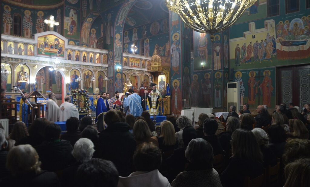 Ο Σεβασμιώτατος έψαλλε τους Οίκους ενώπιον της εικόνας της Θεοτόκου, συμπαραστατούμενος από τον ιεροκήρυκα αρχιμ. Μακάριο Αντωνόπουλο, τον π. Βασίλειο Λιάκο, Προϊστάμενο του Ναού, τον π. Ηλία Λιάκο, τον Συνταξιούχο πρώην Εφημέριο του Ναού, πρωτοπρ. Κωνσταντίνο Σαράκη και τους διακόνους π. Στέφανο Καππέ, π. Αμβρόσιο Καλλιάφα και π. Δημήτριο Λαγούδη. Τους ύμνους της Ακολουθίας απέδωσαν ο Πρωτοψάλτης κ. Χριστόφορος Κοκορόσκος και ο Λαμπαδάριος κ. Ιωάννης Σιδέρης.