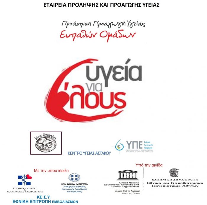 Στις 26.09.2020 ημέρα Σάββατο, θα πραγματοποιηθεί Ιατρική Παρέμβαση, στον Δήμο Ξηρομέρου, στο Κ.Υ. Αστακού (ώρα έναρξης 09:00 π.μ. – 03:00 μ.μ.), σε συνεργασία με την 6η Υ.ΠΕ., τον Δήμο Ξηρομέρου, το Γ.Ν.Πατρών «Ο Άγιος Ανδρέας», την Β’ Μ/Γ κλινική του Π.Ν. «Αρεταίειο», τον Ι.Σ. Αιτωλοακαρνανίας, το Δίκτυο Μαιών Δυτικής Ελλάδος.
