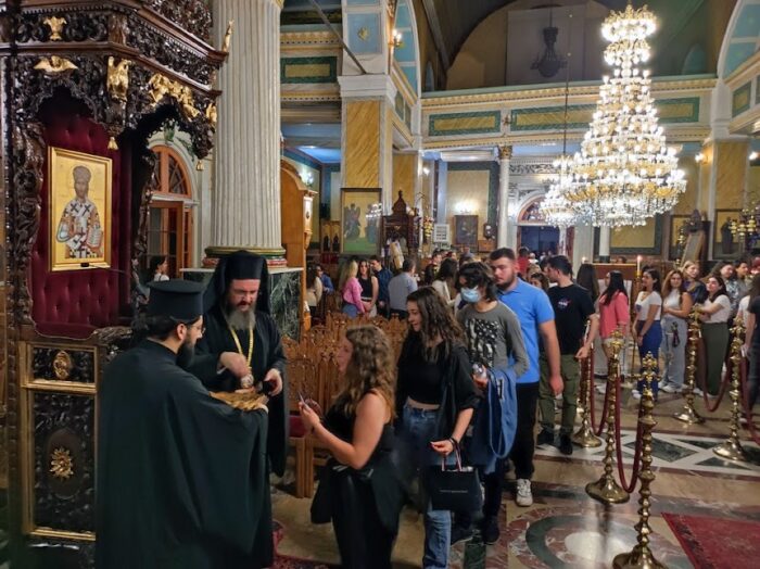 Στο τέλος των ακολουθιών ο Μητροπολίτης κ. Δαμασκηνός προσέφερε στους μαθητές και τις μαθήτριες, ως ευλογία, ένα στυλό και μια εικόνα του Χριστού.