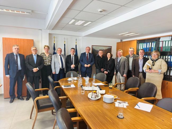 Σε ευρεία σύσκεψη εργασίας προήδρευσε ο Υπουργός Αγροτικής Ανάπτυξης και Τροφίμων, Κώστας Τσιάρας, κατά τη διάρκεια επίσκεψής του στα γραφεία του ΕΛΓΟ-ΔΗΜΗΤΡΑ. Στη συνάντηση συμμετείχαν ο Πρόεδρος του Οργανισμού, Αντώνης Φιλιππής, ο Α΄ Αντιπρόεδρος, Καθηγητής Νεκτάριος Βιδάκης και ο Β΄ Αντιπρόεδρος, Παναγιώτης Χατζηνικολάου, οι Γενικοί Διευθυντές του Οργανισμού και εκπρόσωπος των εργαζομένων.