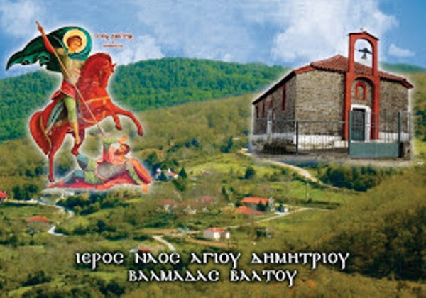 Την 26η Οκτωβρίου 2019, ημέρα Σάββατο, γιορτή του μεγαλομάρτυρος Αγίου Δημητρίου του Μυροβλήτου, θα τελεστεί θεία λειτουργία στον Ιερό Ναό Αγίου Δημητρίου Βαλμάδας Βάλτου Αιτωλ/νίας.