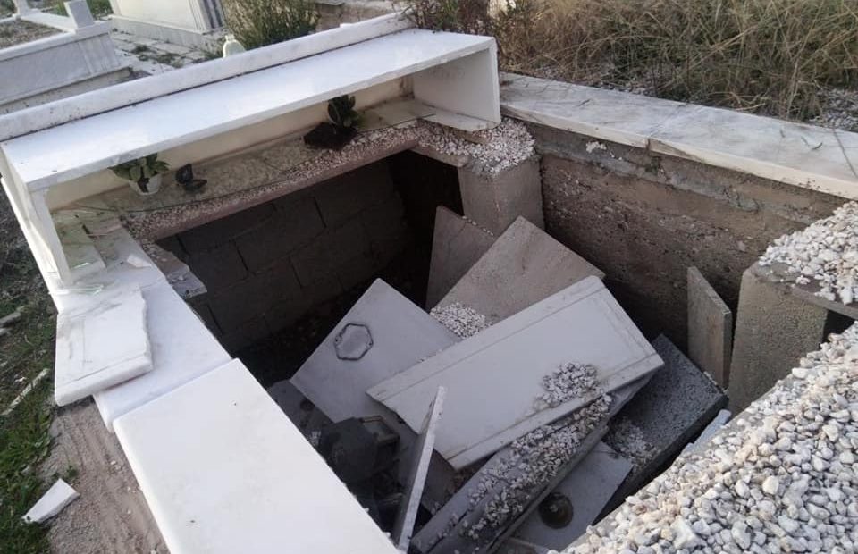 Σύμφωνα με πληροφορίες άγνωστος ή άγνωστοι προκάλεσαν μεγάλες φθορές, που έγιναν αντιληπτές από κατοίκους της περιοχής που επισκέφθηκαν το νεκροταφείο και κάνουν λόγο για μακάβριο γεγονός και αδυνατούν να πιστέψουν πως οι δράστες προέβησαν σε αυτή την πράξη.