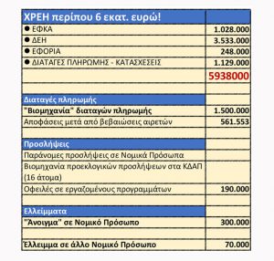 • Χρέη πάνω από 4.800.000 €στον ΕΦΚΑ,στη ΔΕΗστην Εφορία!