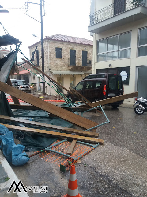 Καταστροφές σήμερα το πρωί στην πόλη του Αστακού από το πέρασμα δυνατού ανεμοστρόβιλου.