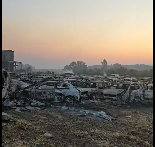 Στη μάντρα, μεταξύ Άνω και Κάτω Αχαγιάς, βρίσκονταν περίπου 1.000 οχήματα, αναφέρουν οι κάτοικοι της περιοχής, τα οποία έχουν καταστραφεί όλα.