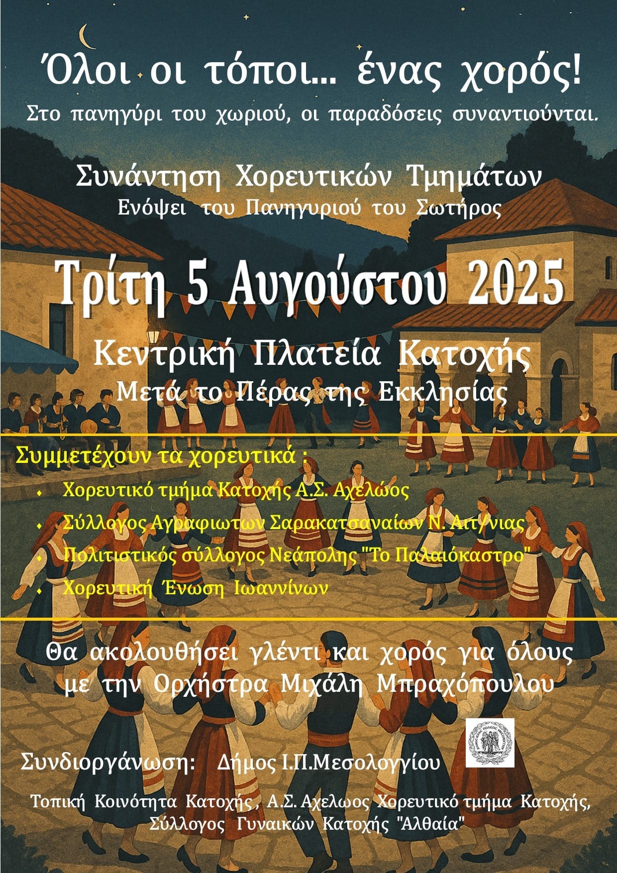 Σας προσκαλούμε όλους στην κεντρική πλατεία της Κατοχής μετά το πέρας της λειτουργίας την Τρίτη 5 Αυγούστου για μια όμορφη βραδιά.