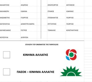 Όσοι προσέλθουν θα κληθούν να επιλέξουν την ονομασία του κόμματος όπου ανάμεσα στις προτάσεις είναι “ΠΑΣΟΚ-Κίνημα Αλλαγής” και “ΠΑΣΟΚ- Δημοκρατική Παράταξη“, ενώ δεν αποκλείονται να προκύψουν και άλλες καθώς και το σήμα που θα κυριαρχεί θα είναι ο γνωστός ήλιος.