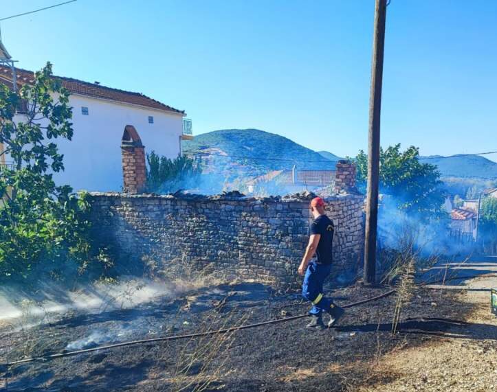 Η φωτιά εκδηλώθηκε σε οικόπεδο, καίγοντας χαμηλή βλάστηση και προκαλώντας ζημιές σε μία ακατοίκητη οικία.