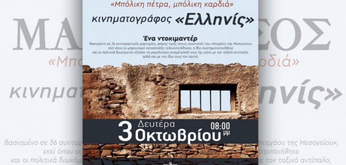 Η ΤΕ Αιτωλοακαρνανίας του ΚΚΕ καλεί στην προβολή του ντοκιμαντέρ ΜΑΚΡΟΝΗΣΟΣ «Μπόλικη πέτρα, μπόλικη καρδιά» στις 8 μ.μ. στον κινηματογράφο “ΕΛΛΗΝΙΣ” στο Αγρίνιο.