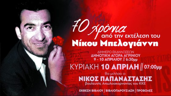 ΚΚΕ_Διήμερο εκδηλώσεων Αγρίνιο, 70 χρόνια από την εκτέλεση του Νίκου Μπελογιάννη