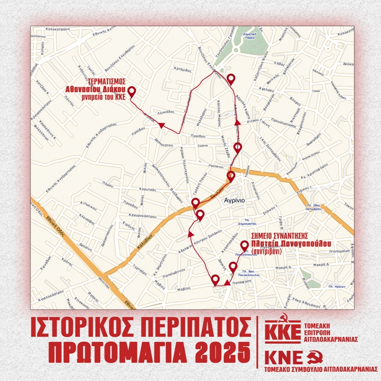 Η Τομεακή Επιτροπή Αιτωλοακαρνανίας του ΚΚΕ και το Τομεακό Συμβούλιο Αιτωλοακαρνανίας της ΚΝΕ, διοργανώνουν ιστορικό περίπατο στο Αγρίνιο, την Κυριακή 27 Απριλίου, στις 11πμ, μπροστά στην Πρωτομαγιά, με τίτλο: «Στους ξεσηκωμένους του πικρού καπνού…που ψήλωσαν το μπόι της τάξης μας», αφιερωμένο στους αγώνες της εργατικής τάξης της πόλης μας, με πρωτοπόρους τους καπνεργάτες.