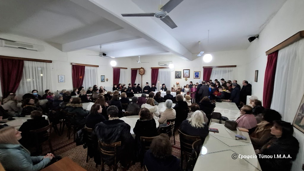 Ο Σεβασμιώτατος ευλόγησε και έκοψε την πρωτοχρονιάτικη βασιλόπιττα της Διακονίας, ενώ οι μαθητές της Σχολής Βυζαντινής Μουσικής Αγρινίου «Δαυίδ ο Ψαλμωδός» έψαλλαν παραδοσιακά κάλαντα και τραγούδια.