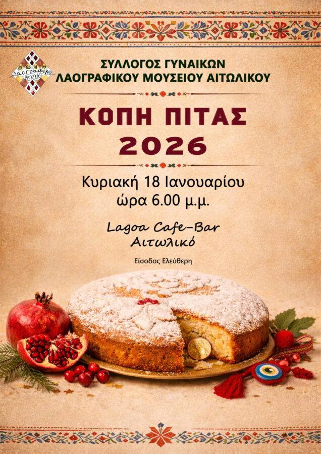 Σας προσκαλούμε στην κοπή της πίτας μας, για το 2026!