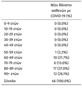 Οι νέοι θάνατοι ασθενών με COVID-19 είναι 46, ενώ από την έναρξη της επιδημίας έχουν καταγραφεί συνολικά 28.701 θάνατοι. Το 95.5% είχε υποκείμενο νόσημα ή/και ηλικία 70 ετών και άνω.