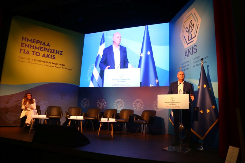 Ο Γενικός Γραμματέας Αγροτικής Πολιτικής και Διεθνών Σχέσεων του Υπουργείου Αγροτικής Ανάπτυξης και Τροφίμων, Αντώνης Φιλιππής, ο οποίος είναι υπεύθυνος και για την εφαρμογή του AKIS τόνισε  ότι είναι ένα στρατηγικό εργαλείο που μπορεί να αλλάξει ριζικά το μέλλον της ελληνικής γεωργίας. Όπως υπογράμμισε, η ελληνική γεωργία καλείται να ανταποκριθεί στις μεγάλες προκλήσεις της εποχής – την κλιματική κρίση, την ανάγκη μείωσης του περιβαλλοντικού αποτυπώματος, τον διεθνή ανταγωνισμό – και σε αυτό το πλαίσιο «η γνώση και η καινοτομία δεν αποτελούν πολυτέλεια, αλλά αναγκαιότητα». Ο ΓΓ επανέλαβε ότι το AKIS λειτουργεί ως «γέφυρα που ενώνει το χωράφι με το πανεπιστήμιο, τον παραγωγό με τον ερευνητή και τον σύμβουλο με την πολιτεία», ενώ παράλληλα δημιουργεί ένα ζωντανό δίκτυο συνεργασίας που προσφέρει απτές λύσεις στους αγρότες. Αναφέρθηκε στις παρεμβάσεις της νέας ΚΑΠ 2023–2027 για κατάρτιση, συμβουλευτικές υπηρεσίες και συνεργασίες μέσω Επιχειρησιακών Ομάδων, με σημαντικούς διαθέσιμους πόρους. Κλείνοντας, σημείωσε ότι το μεγάλο στοίχημα είναι να κερδηθεί η εμπιστοσύνη των παραγωγών. «Η ελληνική γεωργία μπορεί και θα τα καταφέρει. Με γνώση, με καινοτομία, με συνεργασία», τόνισε χαρακτηριστικά.