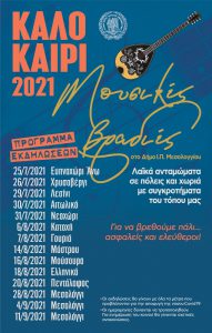Νότες χαράς και ζωντάνιας σε πόλεις και χωριά του Δήμου Ι.Π. Μεσολογγίου επιθυμεί να προσφέρει η Δημοτική Αρχή φέτος το καλοκαίρι και γι’ αυτό ετοιμάστηκαν οι «Μουσικές Βραδιές».