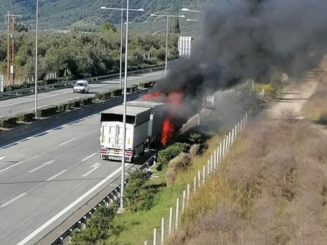 Φωτιά εκδηλώθηκε σε φορτηγό που κινούνταν στην Ιόνια Οδό στο ρεύμα προς Αγρίνιο.