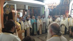 Στην ακολουθία του πανηγυρικού αρχιερατικού Εσπερινού, στο Καθολικό της Μονής, χοροστάτησε ο Θεοφιλέστατος Επίσκοπος Ευκαρπίας κ. Ιερόθεος και συγχοροστάτησε ο Σεβασμιώτατος Ποιμενάρχης μας, Μητροπολίτης Αιτωλίας και Ακαρνανίας κ. Κοσμάς.