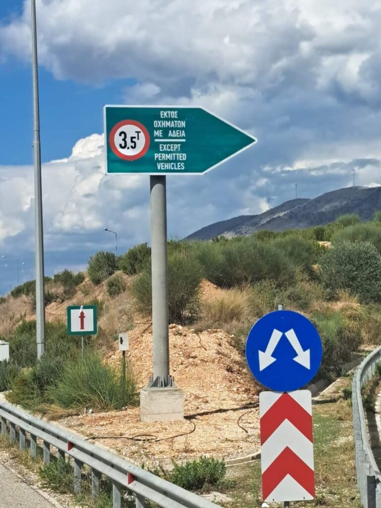 Λανθασμένη σήμανση στην Ιόνια Οδό και την απαγόρευση κυκλοφορίας των φορτηγών άνω των 3,5 τόνων στο Άκτιο – Αμβρακία