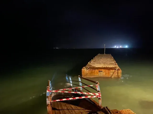 Μέρος της εξέδρας έχει αποκολληθεί και θεωρείται επικίνδυνο για την ασφαλή ναυσιπλοΐα, σύμφωνα με το Λιμεναρχείο, ενώ από το 2012 υπάρχει σχηματισμένη δικογραφία, καθώς είχε τοποθετηθεί χωρίς άδεια, όπως επισημαίνει η Λιμενική Αρχή.