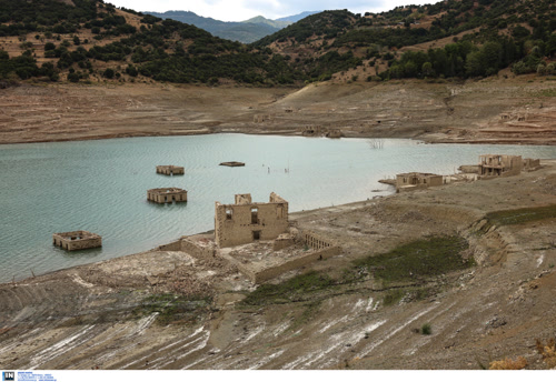Σε περιόδους λειψυδρίας, όπως συνέβη το 1993, μέρος των σπιτιών εμφανίζεται στις όχθες.