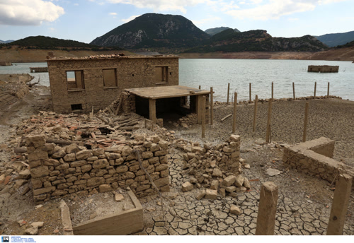 Το βυθισμένο χωριό Κάλλιο στη Δωρίδα αναδύθηκε ξανά, καθώς τα νερά της τεχνητής λίμνης του Μόρνου έχουν υποχωρήσει ανησυχητικά, λόγω της λειψυδρίας που επικρατεί και στη χώρα μας.