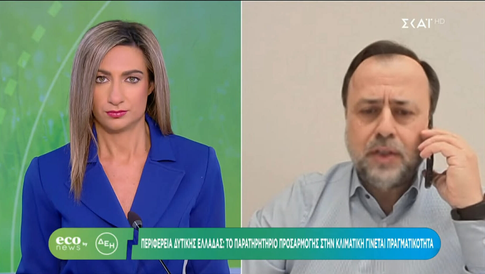 Τα καινοτόμα χαρακτηριστικά και τις δράσεις που ενσωματώνει το Παρατηρητήριο Προσαρμογής στην Κλιματική Αλλαγή της Περιφέρεια Δυτικής Ελλάδας παρουσίασε ο Αντιπεριφερειάρχης Βιώσιμης Ανάπτυξης, Ενέργειας, Χωροταξίας και Περιβάλλοντος, Λίνος Μπλέτσας, μιλώντας στην εκπομπή Econews by Day της τηλεόρασης του ΣΚΑΪ.