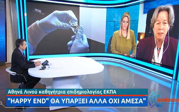 «Πόσοι Έλληνες πρέπει να εμβολιαστούν για να πούμε ότι είμαστε ασφαλείς;» ρωτήθηκε η καθηγήτρια επιδημιολογίας ΕΚΠΑ, Αθηνά Λινού σε εκπομπή της ΕΡΤ. «Επτά εκατομμύρια» ήταν η απάντησή της στη διάρκεια της συζήτησης για το πειραματικό εμβόλιο των Pfizer (ΗΠΑ) και BioNTech (Γερμανία) που φαίνεται να είναι πάνω από 90% αποτελεσματικό μία εβδομάδα μετά τη δεύτερη δόση του.