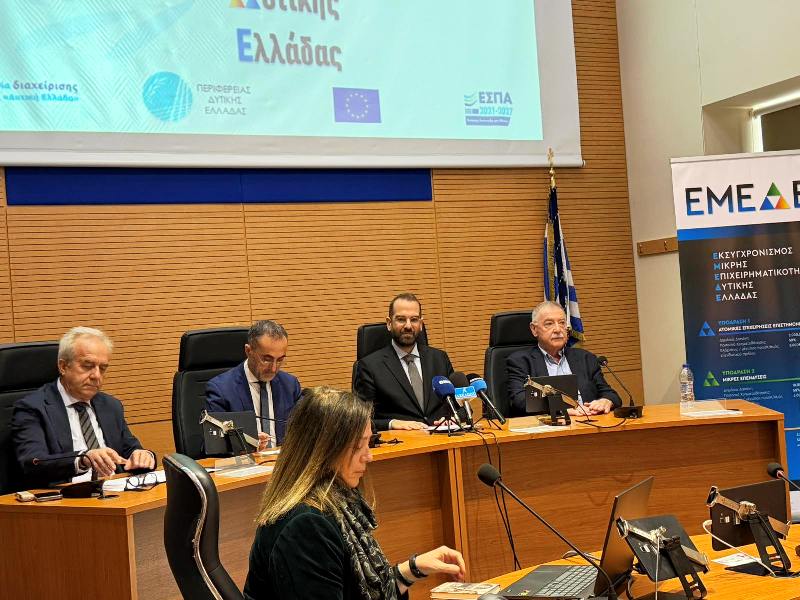 Ο Περιφερειάρχης Δυτικής Ελλάδας Νεκτάριος Φαρμάκης, καθώς επίσης οι Πρόεδροι των Επιμελητηρίων Αχαΐας Θεόδωρος Λουλούδης, Αιτωλοακαρνανίας Παναγιώτης Τσιχριτζής και Ηλείας Κωνσταντίνος Λεβέντης παρουσίασαν τη δράση «Εκσυγχρονισμός Μικρών Επιχειρήσεων Δυτικής Ελλάδας 2025», η οποία χρηματοδοτείται από το Επιχειρησιακό Πρόγραμμα ΔΥΤΙΚΗ ΕΛΛΑΔΑ 2021-2027 και προκηρύχθηκε τον περασμένο Δεκέμβριο.