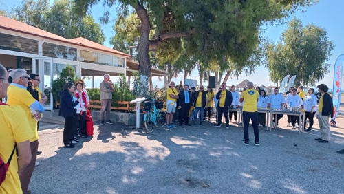 Οι ποδηλάτες ξεκίνησαν τη διαδρομή τους από το ξενοδοχείο «Theoxenia» και τερμάτισαν στο κατάστημα «Tourlida Beach», όπου τους υποδέχθηκαν με χυμούς, καφέδες και γλυκίσματα που είχαν ετοιμαστεί ειδικά για την εκδήλωση από τους μαθητές της ΕΠΑΣ Μαθητείας Μεσολογγίου.