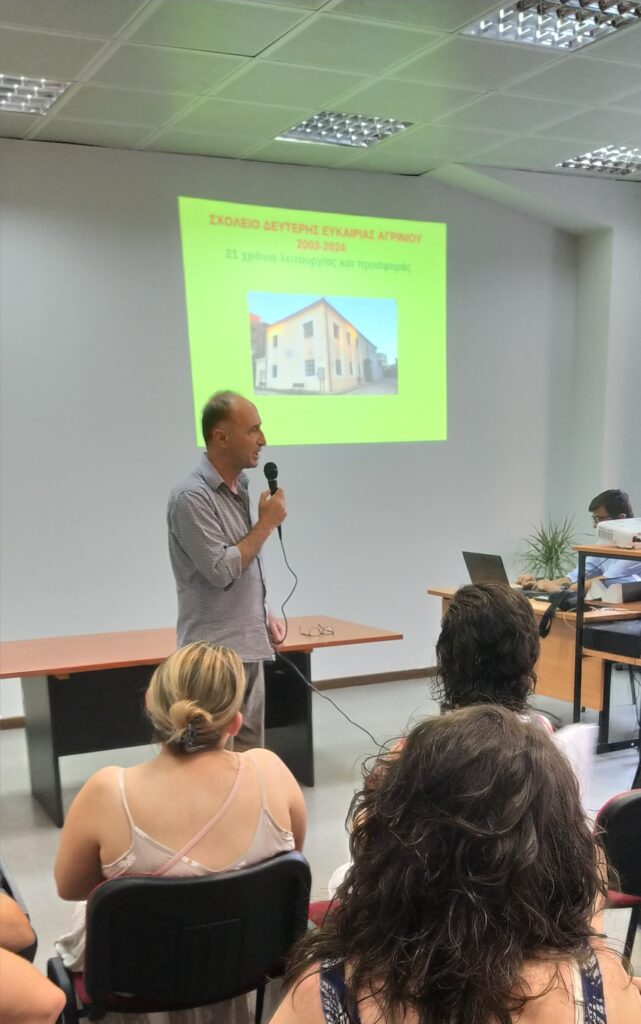Αρχικά έγινε εισήγηση από το Διευθυντή του ΣΔΕ Αγρινίου Νικόλαo Νάσιο για το ευρωπαϊκό πρόγραμμα Erasmus+, στη φιλοσοφία του και τους στόχους του και στην ενσωμάτωση των Δράσεων του Προγράμματος στο εκπαιδευτικό γίγνεσθαι του ΣΔΕ Αγρινίου ως ένας καινοτόμος εκπαιδευτικός οργανισμός μάθησης και δημιουργίας στην εκπαίδευσης ενηλίκων.