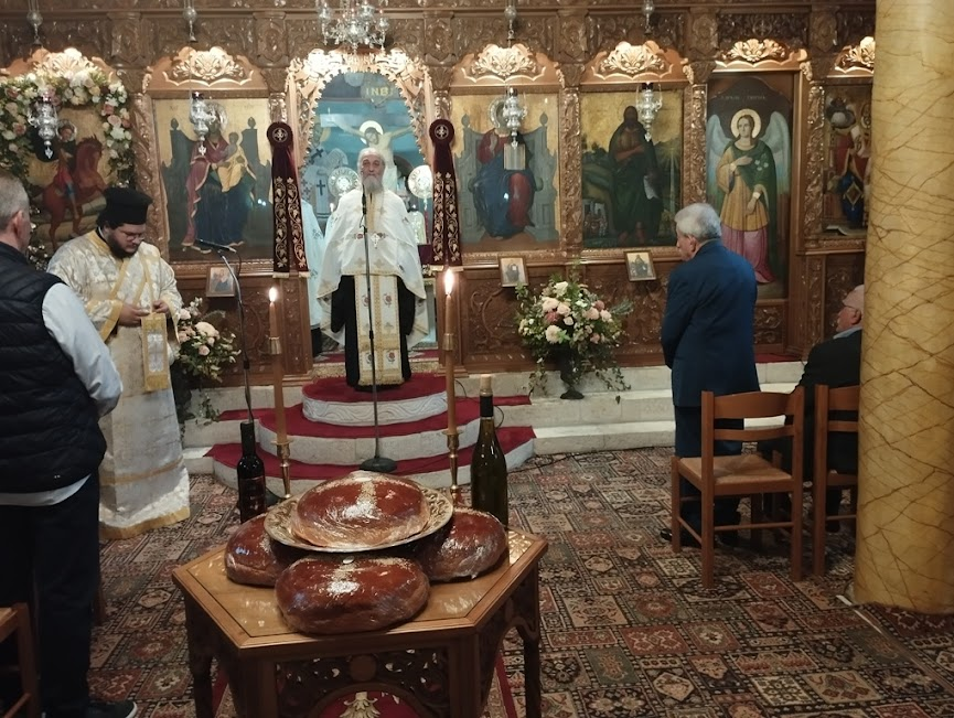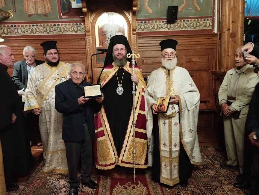 Πριν την απόλυση του Εσπερινού απένειμε το οφφίκιο του Πρωτοπρεσβυτέρου στον π. Κωνσταντίνο Γιολδάση και προσέφερε τιμητική πλακέτα εκ μέρους της Ενορίας στον κ. Θωμά Παπασάββα, ο οποίος διετέλεσε πολλά χρόνια ιεροψάλτης του Ιερού Ναού.