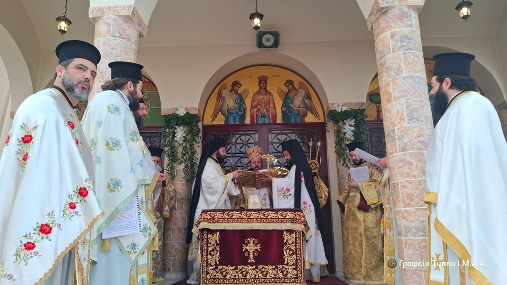 Πριν την απόλυση της Θείας Λειτουργίας ο Σεβασμιώτατος απευθυνόμενος στους πιστούς, που με ευλάβεια συμμετείχαν στις ιερές ακολουθίες, ανέφερε μεταξύ άλλων: «Μας αξίωσε ο Θεός να τελέσουμε τον εγκαινισμό της Αγίας Τραπέζης και ολοκλήρου του μεγαλοπρεπούς αυτού Ιερού Ναού, του αφιερωμένου στην Αγία Μεγαλομάρτυρα Βαρβάρα.