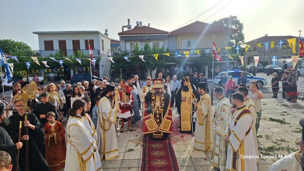Ο Σεβασμιώτατος ευχαρίστησε τον Μητροπολίτη Χαλκίδος κ. Χρυσόστομο, «τον περισπούδαστο και επιφανή Ιεράρχη της Ελλαδικής Εκκλησίας που ποιμαίνει ίσως την πλέον αγιοτόκο Μητρόπολη της Ελλαδικής Εκκλησίας». Ευχαρίστησε τον Καθηγούμενο της Ιεράς Μονής Κοιμήσεως Θεοτόκου Μακρυμάλλης και τον Ιεροκήρυκα π. Νεκτάριο Ευγενικό, που μετέφερε την Τιμία Κάρα. Ιδιαιτέρως συνεχάρη και επήνεσε τον Προϊστάμενο του Ναού, π. Ζαχαρία Σπυρόπουλο, το Εκκλησιαστικό Συμβούλιο και όλα τα στελέχη της Ενορίας για την προετοιμασία της υποδοχής του Ιερού Λειψάνου, αλλά και της ετήσιας πανηγύρεως της Ενορίας.