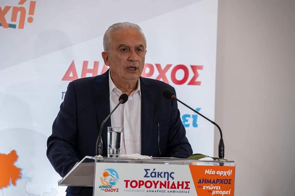 «Η καρδιά της Αμφιλοχίας χτυπάει σήμερα εδώ! Η καρδιά του Ινάχου, του Μενιδίου, χτυπάει σήμερα εδώ! Δίνει ζωή σε μία Νέα Αρχή! Νέα Αρχή για ένα Δήμο για όλους!». Με τα λόγια αυτά ξεκίνησε την ομιλία του ο υποψήφιος δήμαρχος Αμφιλοχίας Σάκης Τορουνίδης, παρουσία εκατοντάδων δημοτών στην πανηγυρική πρώτη εκδήλωση με την οποία και ανακοίνωσε επισήμως την κάθοδό του στις επερχόμενες δημοτικές εκλογές: «Μια εποχή χαμηλών προσδοκιών για τον Δήμο Αμφιλοχίας πρέπει να τελειώσει και θα τελειώσει οριστικά. Ο Δήμος είναι το κοινό μας σπίτι. Θέλουμε όλοι να ζήσουμε στον Δήμο Αμφιλοχίας που αξίζουμε, που αξίζει κάθε δημότης, κάθε οικογένεια. Που αξίζει η νέα γενιά του τόπου μας» τόνισε.